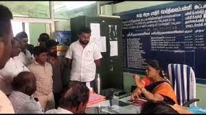 The video shows the relatives of a student surrounding Nirmala, the principal of KR Government School and senior staff and questioning her.
